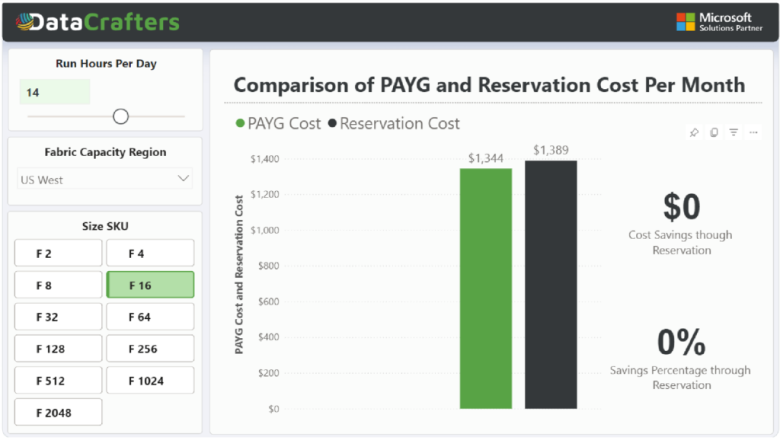 As we can see running F16 for daily 9 hours on PAYG saves you money comparing running on reservation. In this case, you’ll have to run approximately 15 hours to have a better return on your bucks: